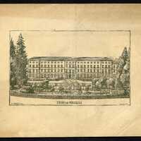 Gravure du Lycée de Périgueux au XIXe siècle. Vue de face, côté de l'entrée principale.