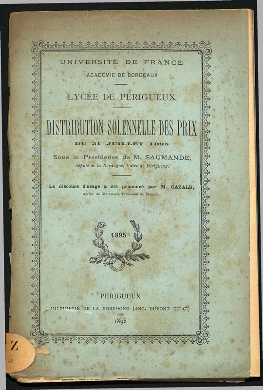 Lycée de Périgueux. Distribution solennelle des prix du 31 juillet 1895