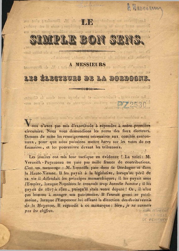 Le simple bon sens. A Messieurs les électeurs de la Dordogne