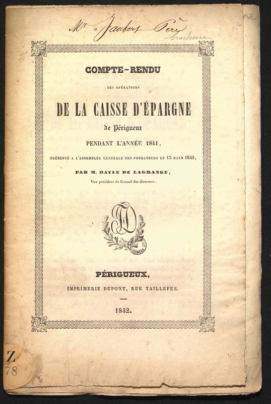Compte-rendu des opérations de la Caisse d'épargne de Périgueux pendant l'année 1841