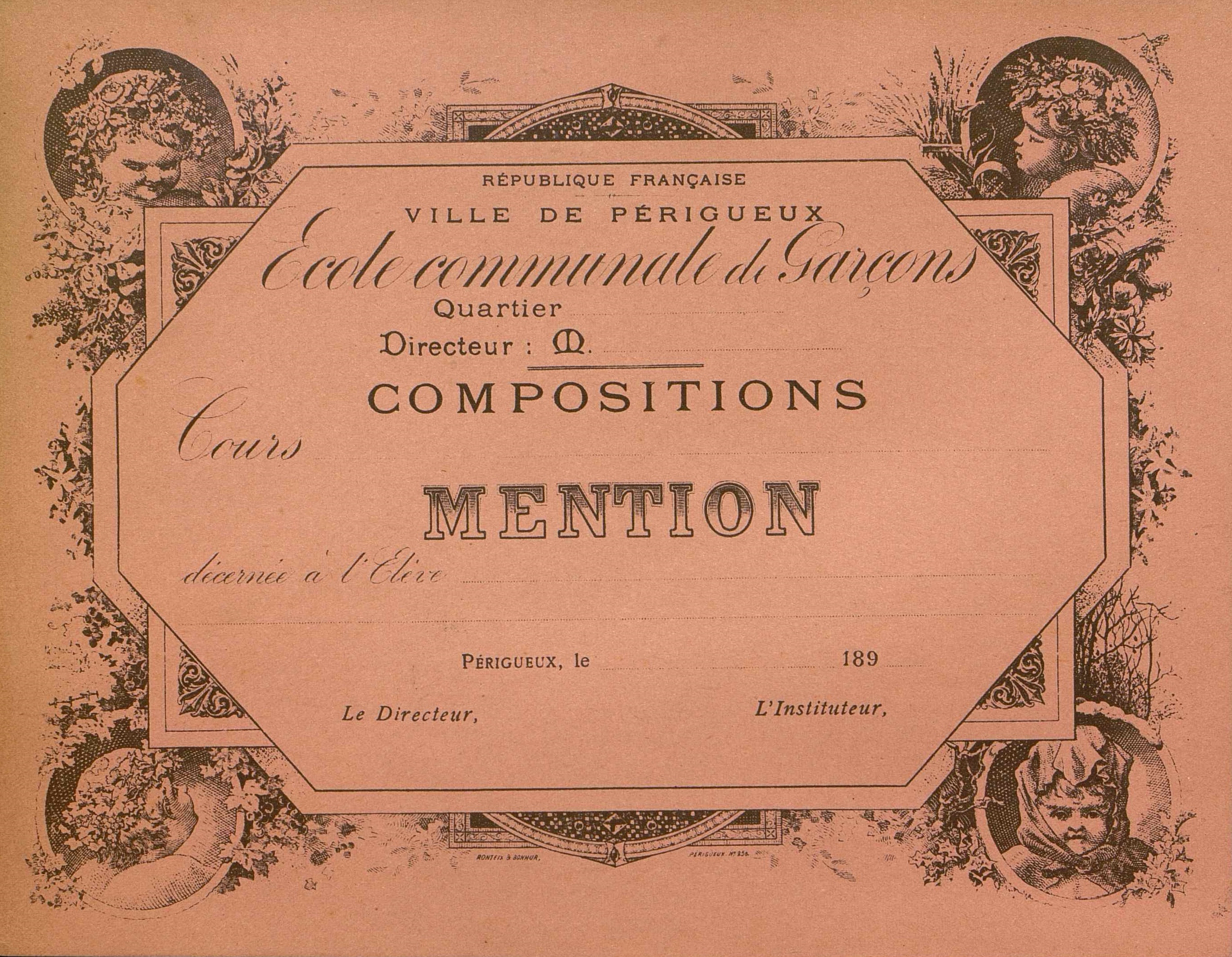 Ecole communale de garçons. Ville de Périgueux. Composition