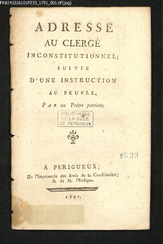 Adresse au clergé inconstitutionnel ; suivie d'une instruction au peuple par un prêtre patriote.