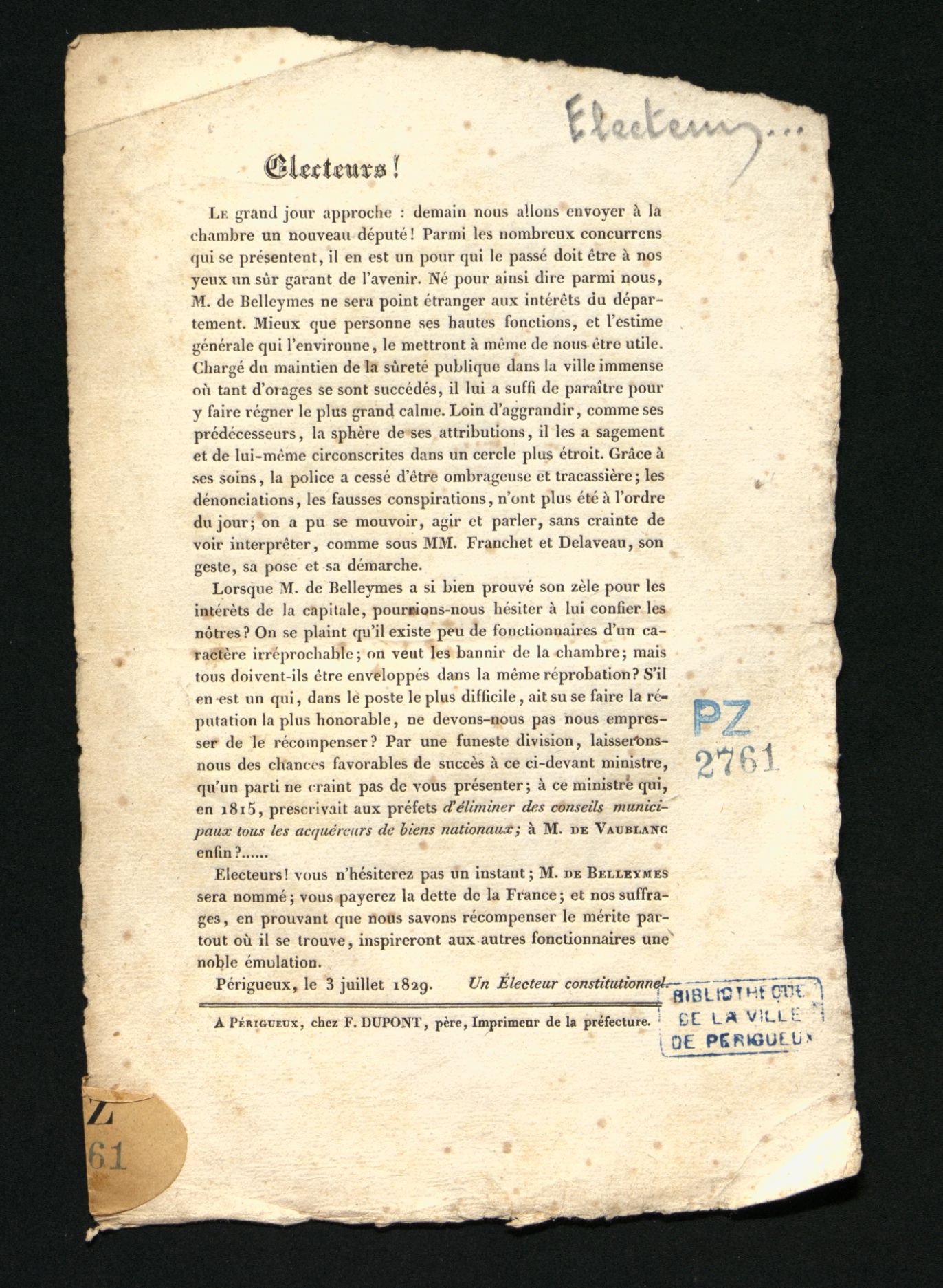 - F. Dupont, Périgueux