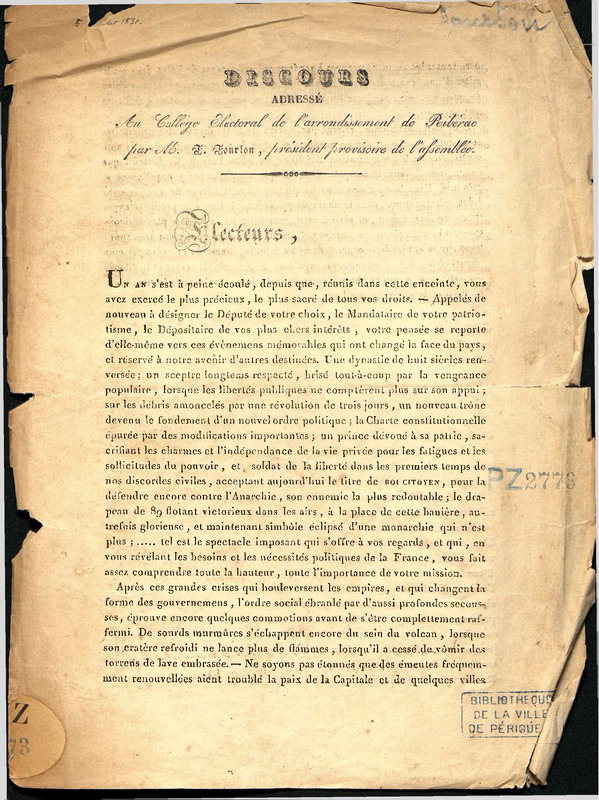 Discours adressé au collège électoral de l'arrondissement de Ribérac