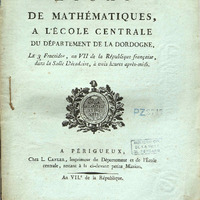 Essai de mathématiques, à l’École centrale de département de la Dordogne, le 3 Fructidor, an VII de la République français, dans la salle décadaire, à trois heures après-midi