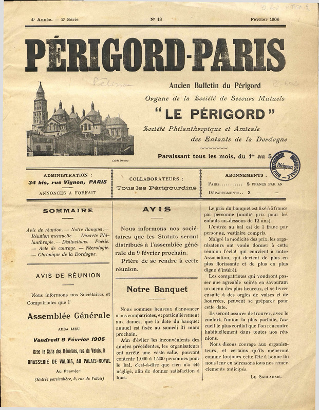 Périgord-Paris : organe de la Société de secours mutuels "Le Périgord"