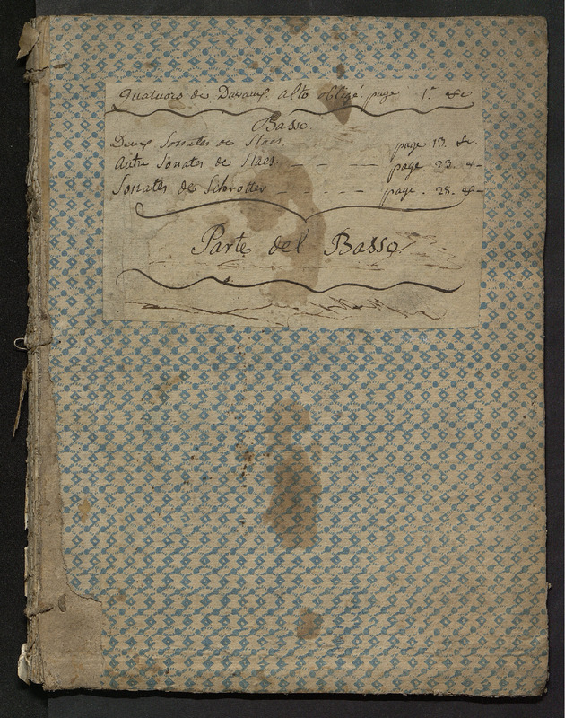 Six quatuors pour deux violons, alto et basse, composés par M. Davaux ; Deux sonates pour le clavecin, ou le piano-forte avec accompagnement d'un violon ou violoncelle par Ferdinand Straes ; Sonate allegro ; Sonates pour le clavecin ou le forte-Piano avec accompagnement d'un violon et violoncelle par Ferdinand Straes.; Sonate andante ; Six sonates pour le clavecin, ou le piano-forte avec accompagnement d'un violon et basse, composés par J.S. Schrotter. Sonate I.