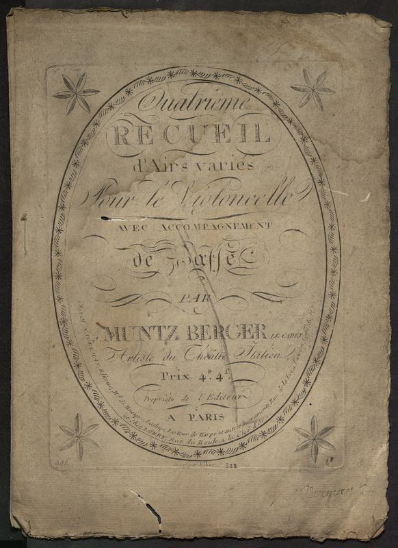 Quatrième recueil d'airs variés pour le violoncelle avec accompagnement de basse par Muntz Berger.