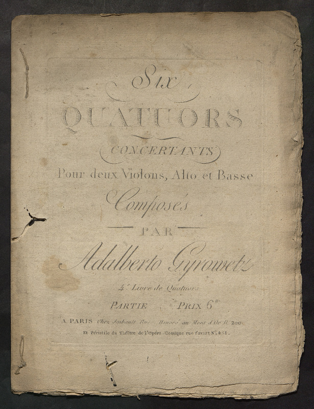 Six quatuors concertants pour deux violons, alto et basse composés par Adalberto Gyrowetz.
