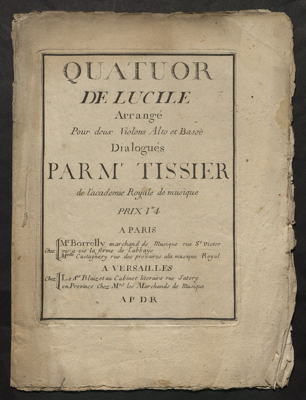 Quatuor de Lucile arrangé pour deux violons Alto et Basse, dialogués par M. Tissier de l'Académie Royale de musique.