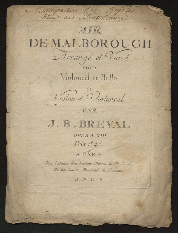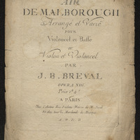Air de Malborough arrangé et varié pour violoncel et basse ou violon et violoncel par J.B. Breval.