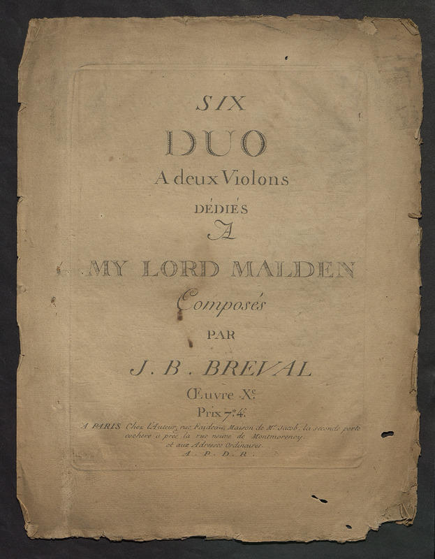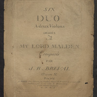 Six duo à deux violons dédiés à my Lord Malden, composés par J.B. Bréval. Œuvre Xe.