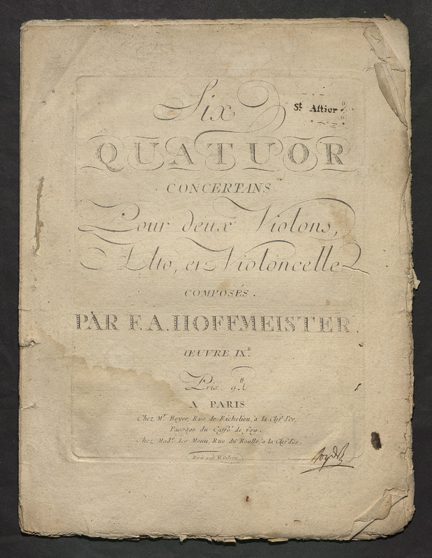 Six quatuor concertans pour deux violons, alto et violoncelle composés par F. A. Hoffmeister.