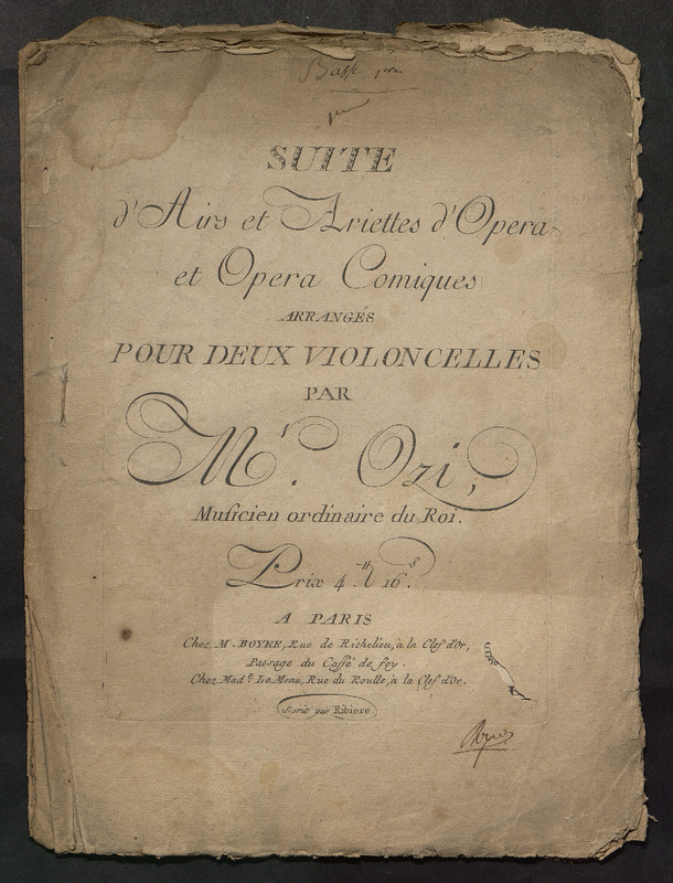 Suite d'airs et ariettes d'opéra et opéra comiques arrangés pour deux violoncelles par M. Ozi.