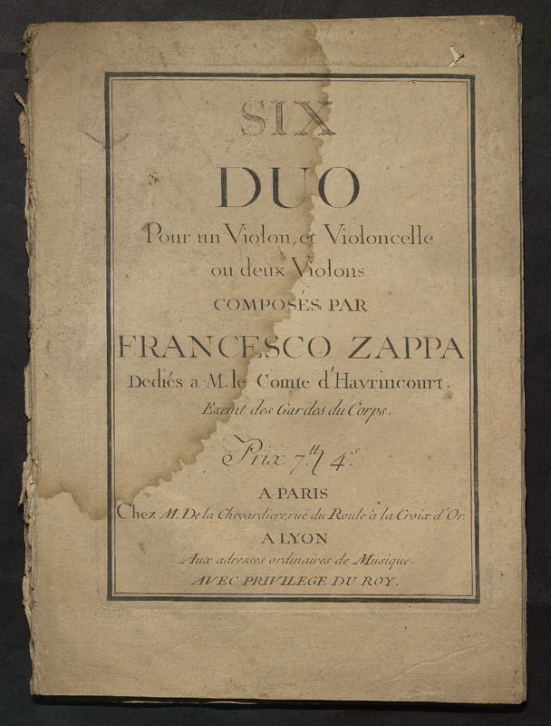 Six duo pour un violon et violoncelle ou deux violons composés par Francesco Zappa.