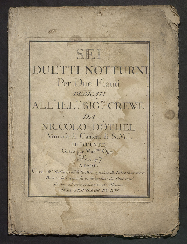 Sei duetti notturni per due flauti dedicati all illustrissimo signore Crewe da Niccolo Dothel.