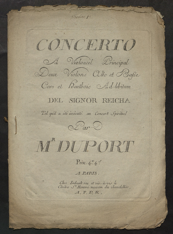 Concerto, violoncel principal, deux violons alto et basse, cors et haubois ad libitum del signor Reicha, par M. Duport.