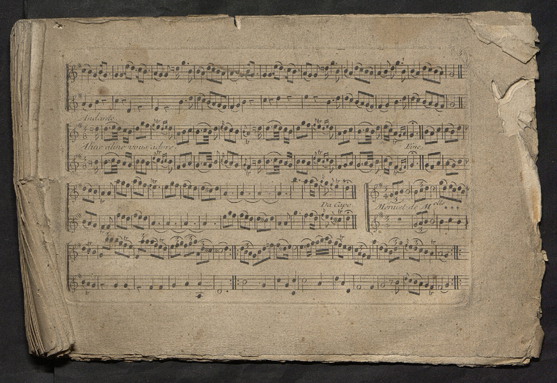 Recueil de pièces françoises et italiennes. Petits airs, brunettes, menuets, etc…avec des doubles et variations accomodés pour deux flûtes traversières, violons, pardessus de viole etc… par M. Taillart l'ainé.