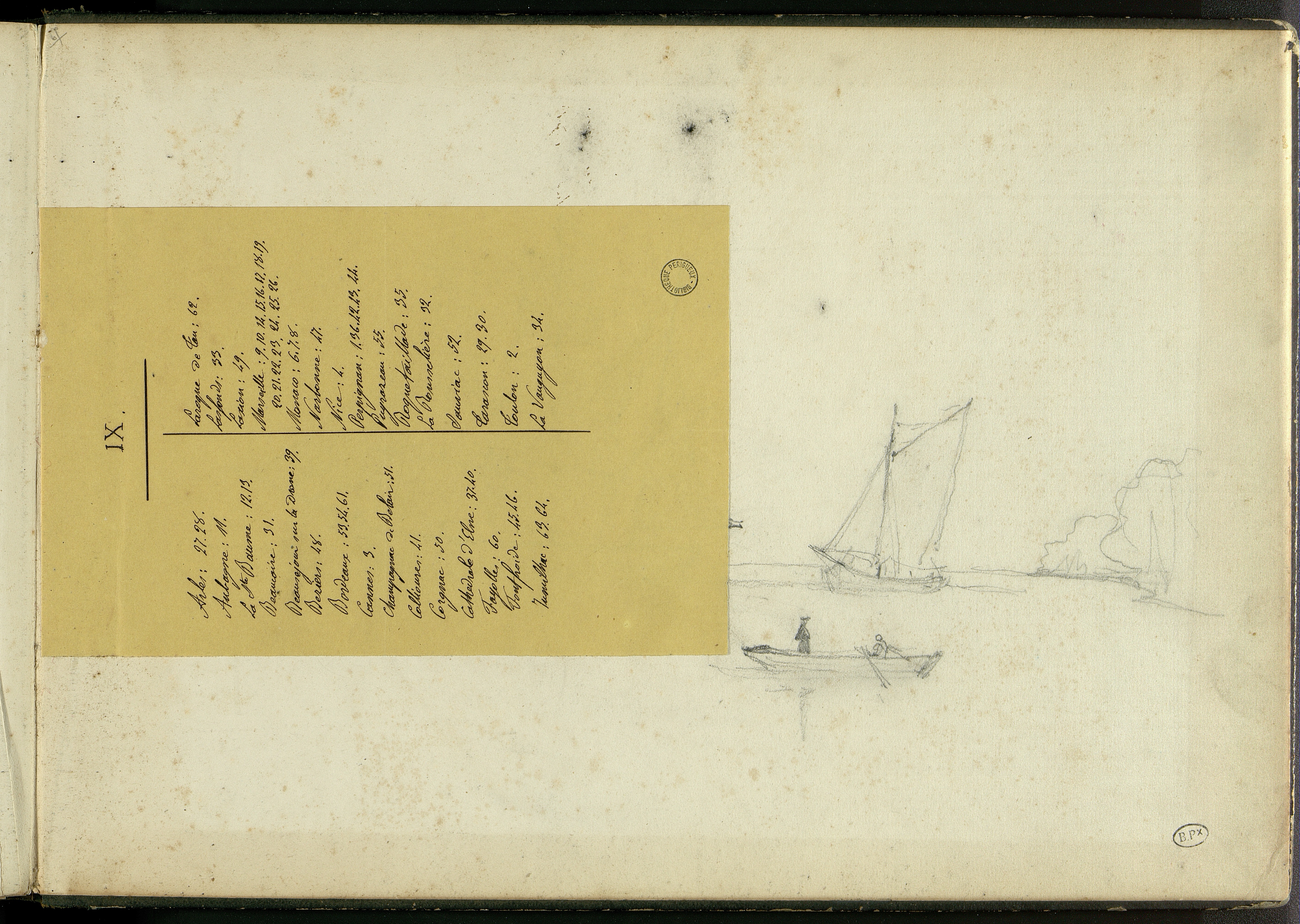 Petit encart jaune formant table des matière du présent carnet à dessin