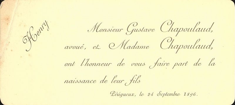 Faire-part de naissance d'Henry Chapoulaud