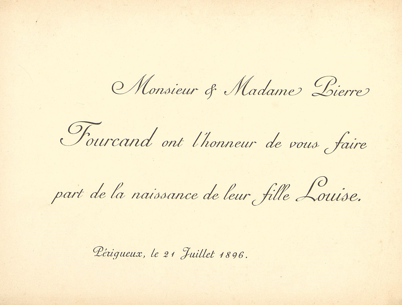 Faire-part de naissance de Louise Fourcand