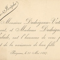 Faire-part de naissance de Marie-Josèphe Dudoignon-Valade.