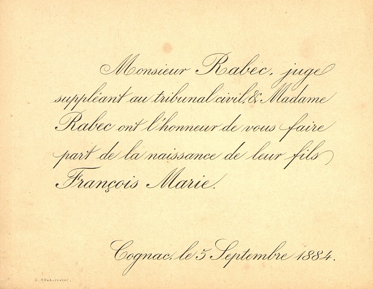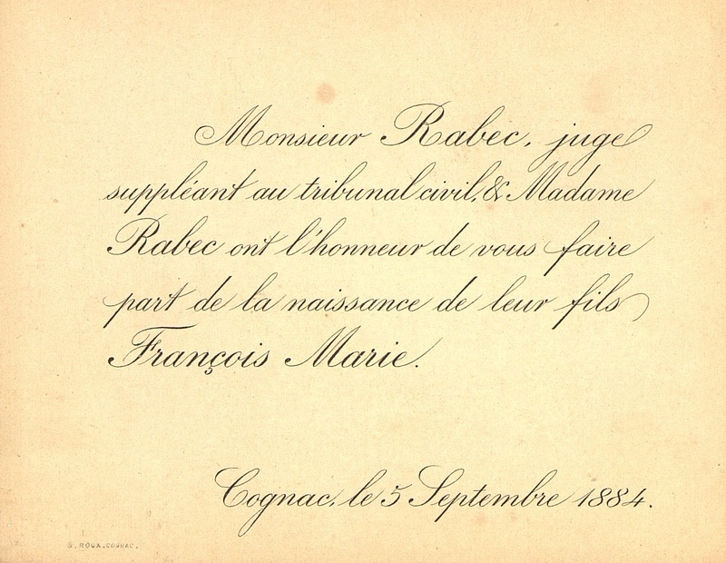 Faire-part de naissance de François-Marie Rabec.