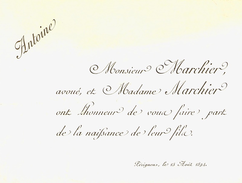 - Faire-part de naissance d'Antoine Marchier par ses parents.