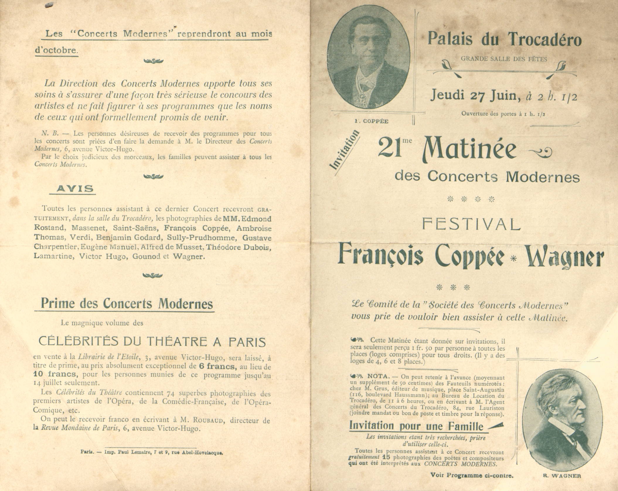 Festival François Coppée, Wagner [Programme et invitation]
