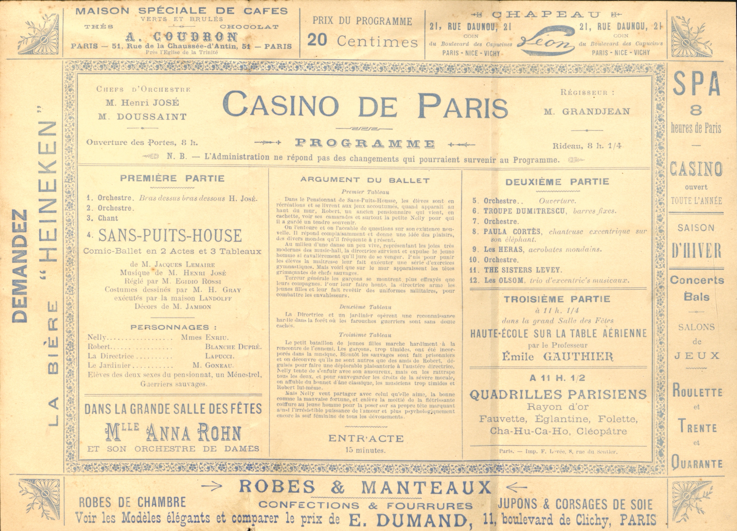 Première partie ; Orchestre ; Chant ; Sans-Puits-House, Comic-Ballet en 2 actes et 3 tableaux