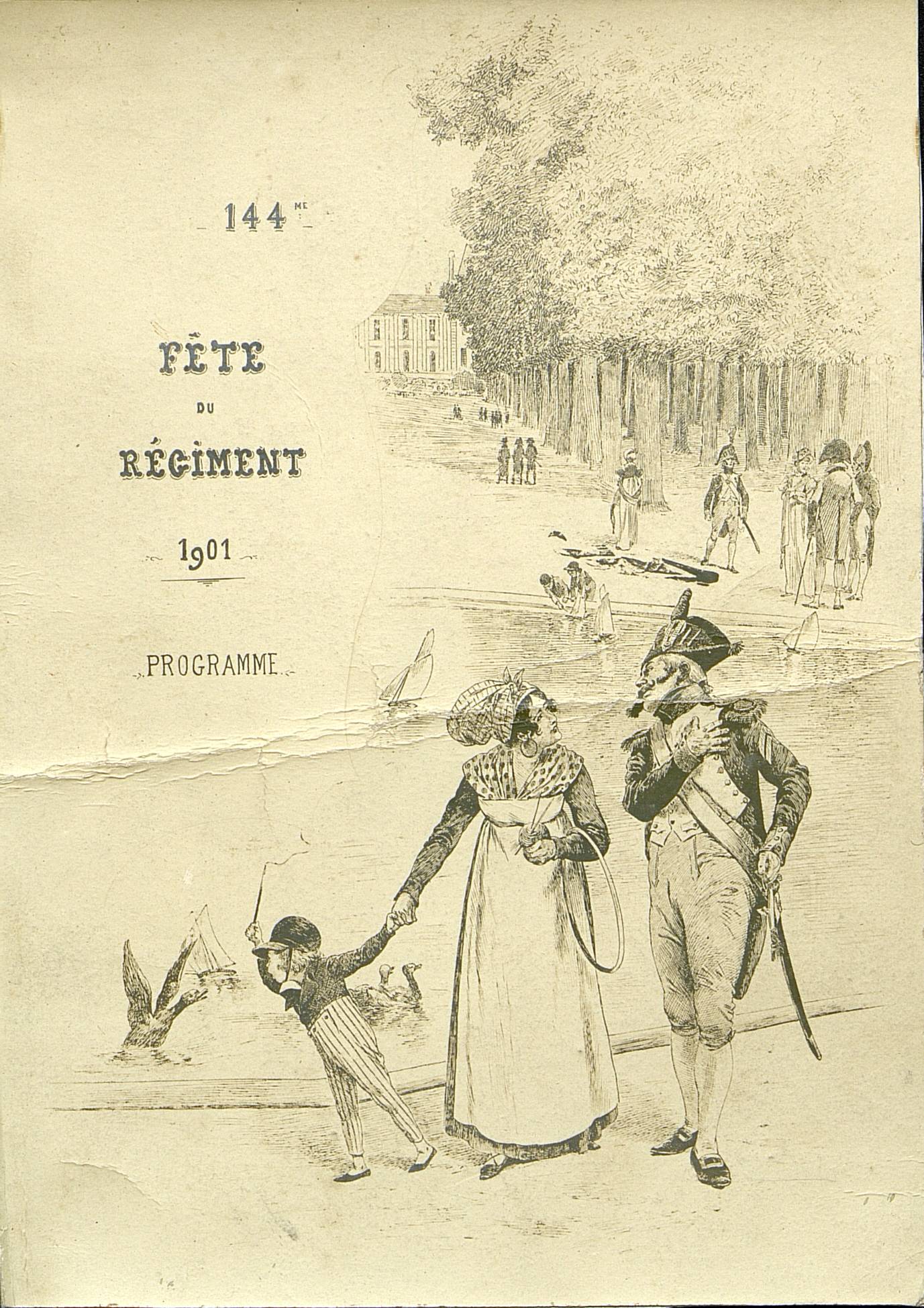 Carte illustré, possiblement incomplète, à propos de la fête du 144e Régiment d'infanterie en 1901.
