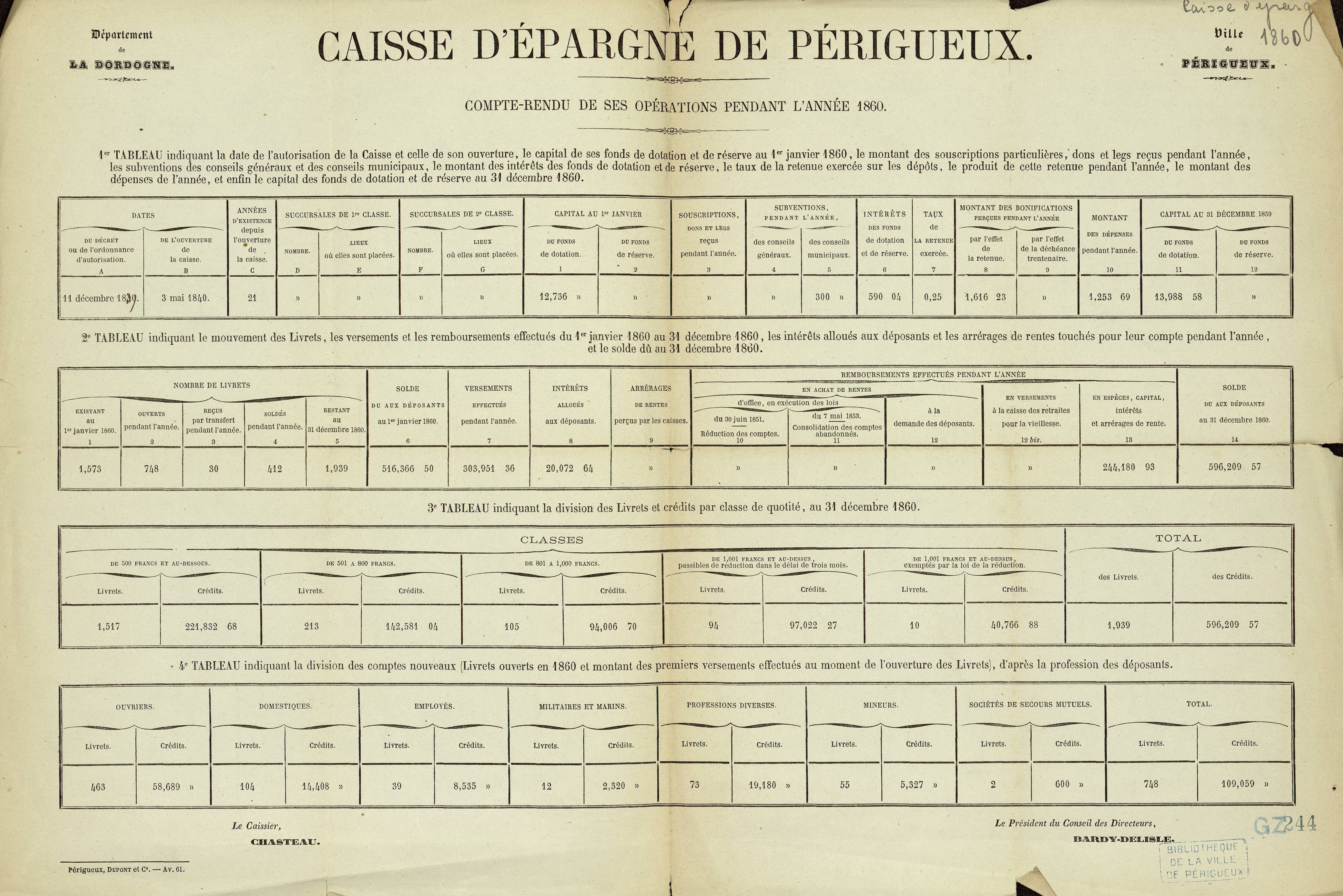 - Caisse d’épargne de Périgueux. Compte-rendu de ses opérations pendant l'année 1860
