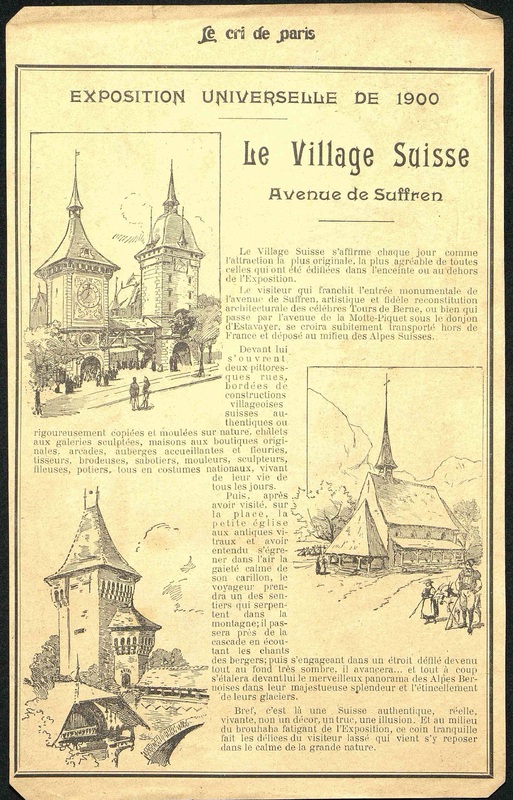 Au dos une publicité pour le Village Suisse à l'Exposition Universelle de 1900.