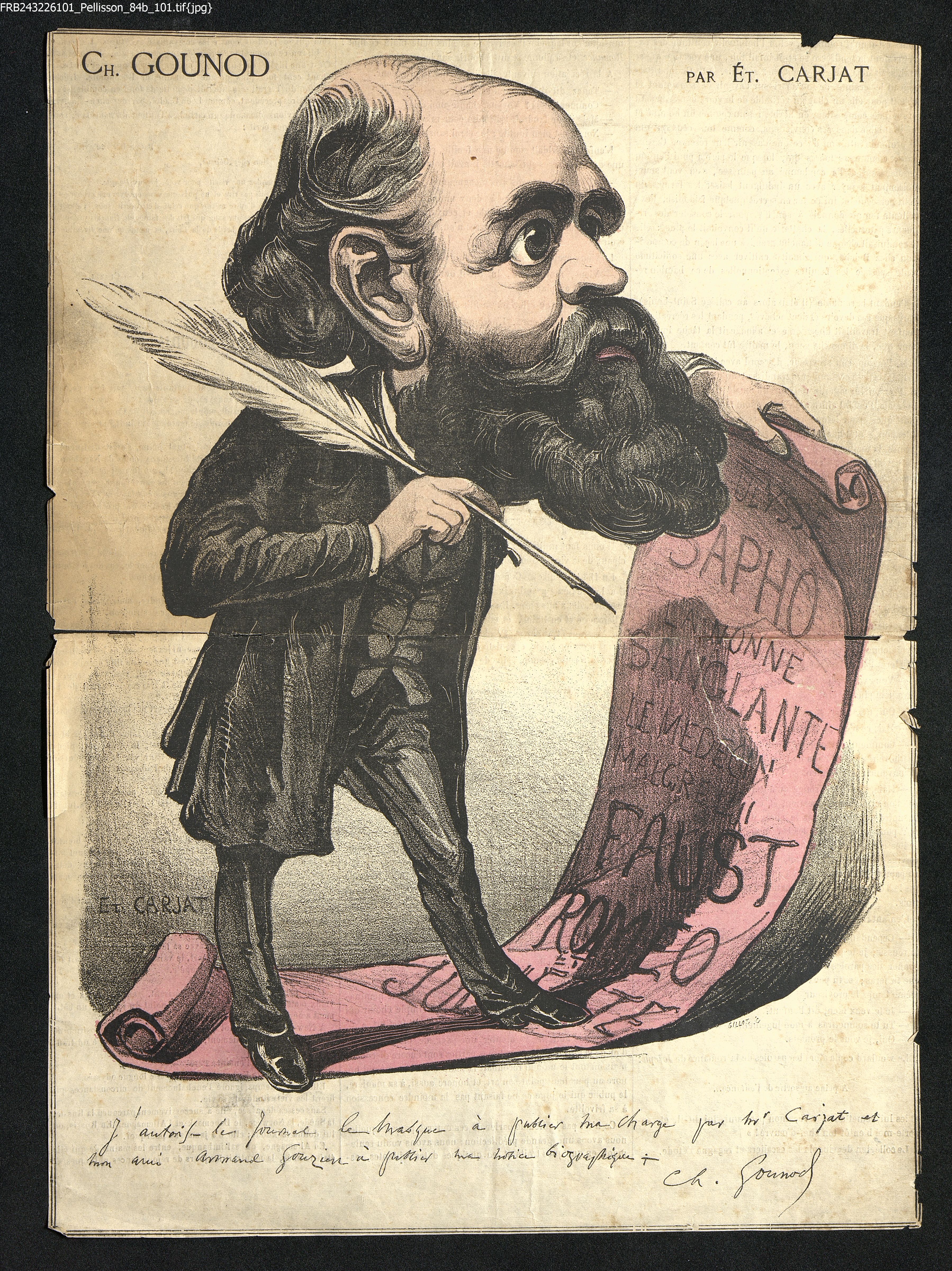 Reproduction d'un petit texte manuscrit en bas de l'image, signé par Gounod. - Identifiant