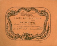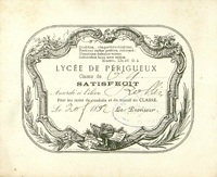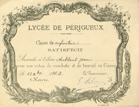 Lycée de Périgueux. Satisfecit. 1892