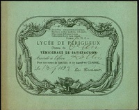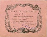 Lycée de Périgueux. Témoignage de satisfaction. 1905