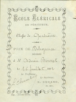 Lycée de Périgueux. Satisfecit. 1906