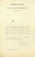 Lettre d'invitation à la distribution solennelle des prix du Lycée de Périgueux.