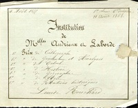 Institution de Mlles Laborde & Andrieux . Prix 1868