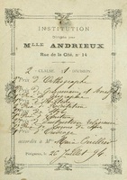 Prix de Grammaire à l'Institution de Mlle Chalaud 1863