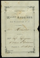 Institution dirigée par Mlle Andrieux . Prix 1900