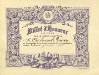 Institution des dames Chalaud à Périgueux. Billet d'honneur. 1885