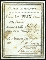 Collège de Périgueux . Premier prix de grammaire. 1811