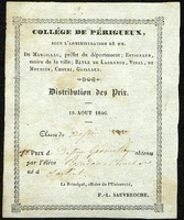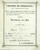 Collège de Périgueux distribution des prix du 19 Aout 1842
