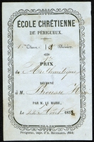 Ecole chrétienne de Périgueux. Prix de Arithmétique