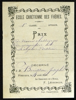 Institut des Frères des Ecoles chrétiennnes. Pensionnat St Jean.Prix de 1ere classe 1 ère division . Prix