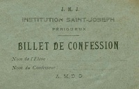 Billet de confession de l'institution Saint-Joseph de Périgueux