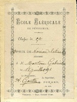Ecole cléricale de Périgueux. 2ième prix de version latine