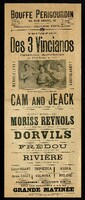 Affiche du Triomphe des 3 Vincianos célèbres acrobates au Bouffe Périgourdin à Périgueux