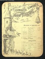 Programme artistique illustré de portraits et de scènes d'actualités.